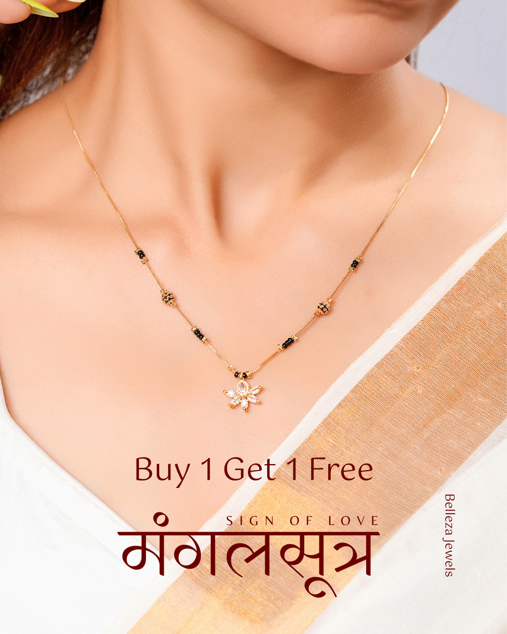 Buy 1 Get 1 Free - Sleek Curve Drop Mangalsutra – Minimal AD Pendant with Dual Black Bead Chain