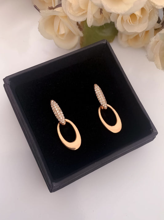 BUY 1 GET 1 FREE -American Diamond Rose Gold Plated Hanging Delicate Earrings