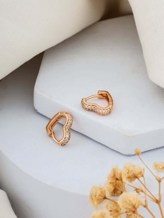BUY 1 GET 1 FREE -American Diamond Rose Gold Plated Heart Shape Fancy Earrings