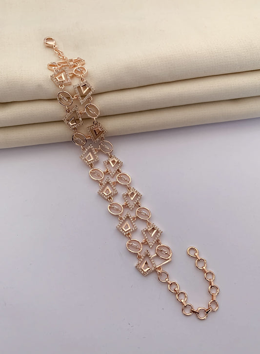 American Diamond Rose Gold Silver And Gold Plated Fancy Chowki Diamond Bracelet
