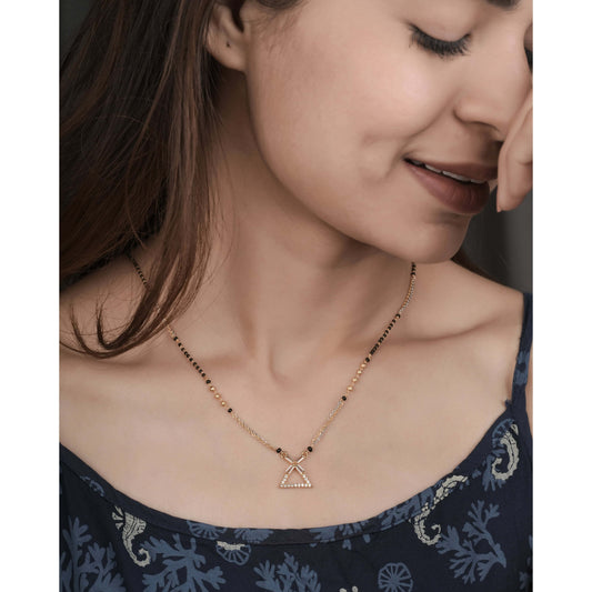 Buy 1 Get 1 Free - American Diamond triangle shape Rose Gold Fancy Delicate Mangalsutra
