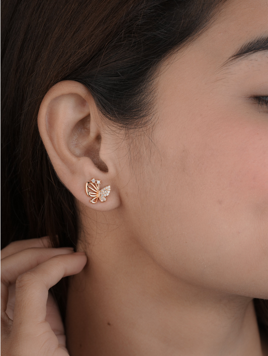 BUY 1 GET 1 FREE -American Diamond Rose Gold Butterfly Fancy Earrings