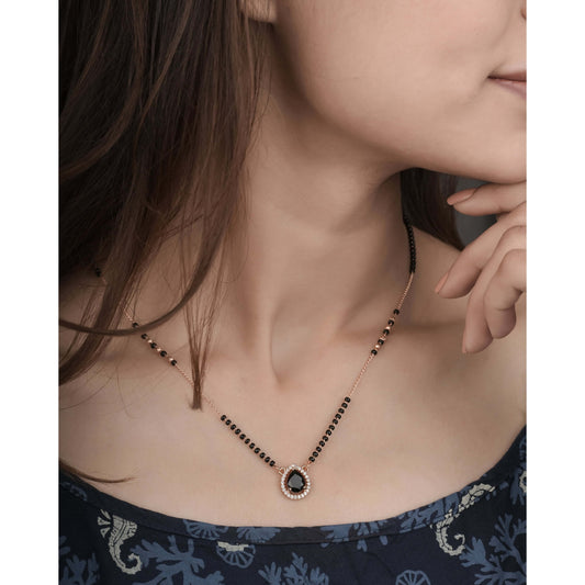 Buy 1 Get 1 Free - American Diamond Black colour Rose Gold Plated Fancy Mangalsutra