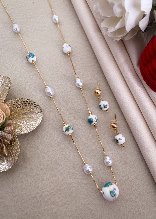 High Gold Fancy printed Pearl Royal Look Western Mala Set