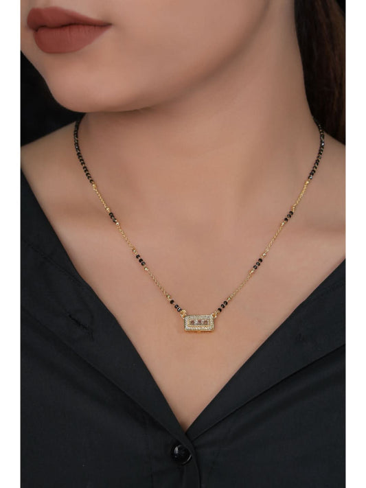 Buy 1 Get 1 Free - American Diamond Square Shape Gold Plated Delicate Fancy chain Mangalsutra