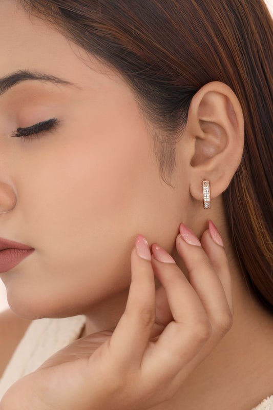 BUY 1 GET 1 FREE -American Diamond Nice Design Double Line Diamond Rose Gold Baali Earrings