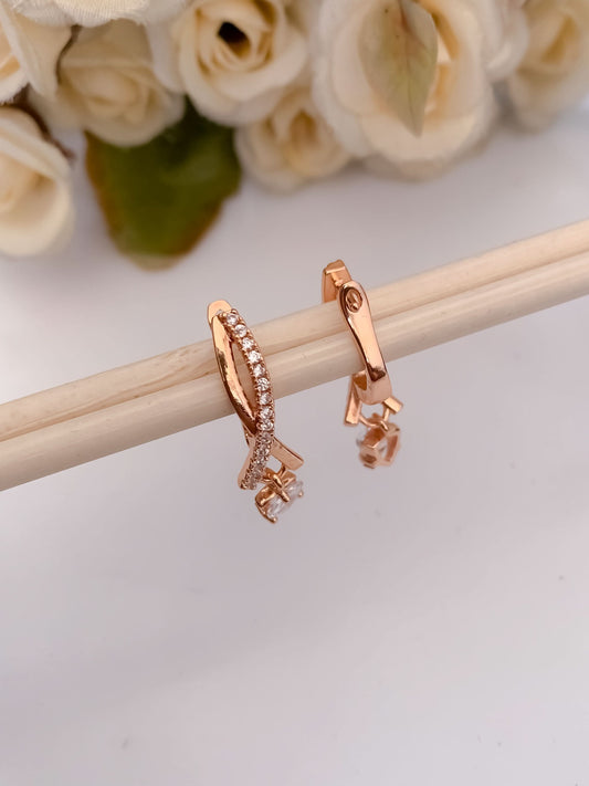 Buy 1 Get 1 Free -American Diamond Rose Gold Delicated Fancy Bali
