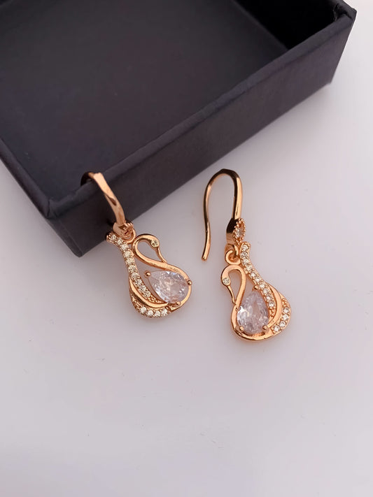 Buy 1 Get 1 Free -American Diamond Rose Gold Swan Shape Hanging Fancy Earrings