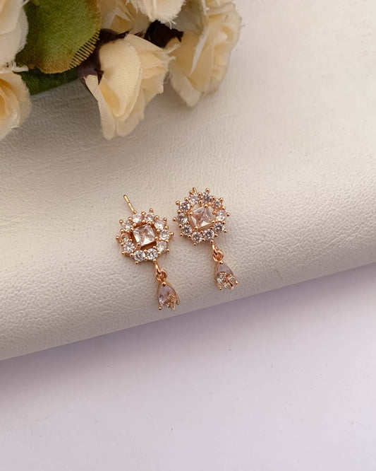 Buy 1 Get 1 Free-American Diamond Fancy Look Delicate Rose Gold Baali Earring