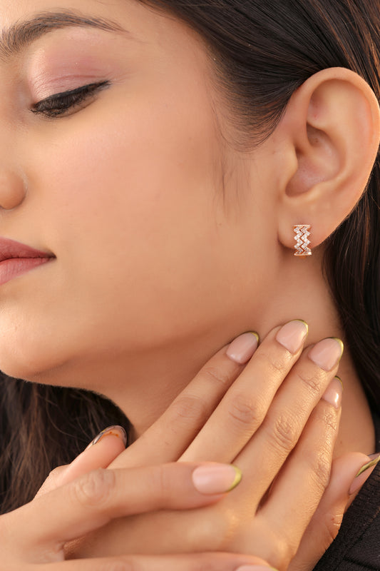 Buy 1 Get 1 Free -American Double Line Diamond Rose Gold Fancy Delicate Earrings Baali