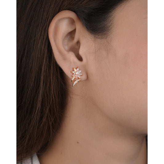 Buy 1 Get 1 Free-American Diamond Flower Shape Rose Gold Delicate Fancy Earrings