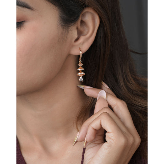 Buy 1 Get 1 Free-American Diamond Rose Gold Hanging Earrings Bali
