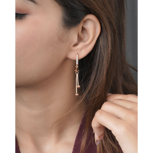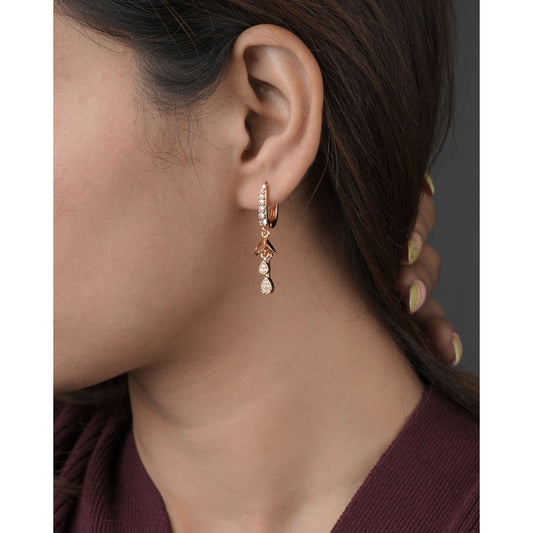 Buy 1 Get 1 Free -American Diamond Rose Gold Hanging Fancy Delicate Bali