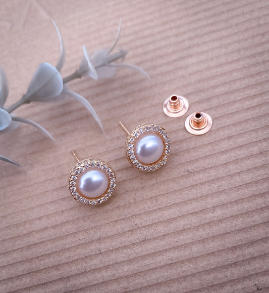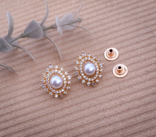 Buy 1 Get 1 Free -American Diamond Rose Gold White Pearl Round Shape Tops