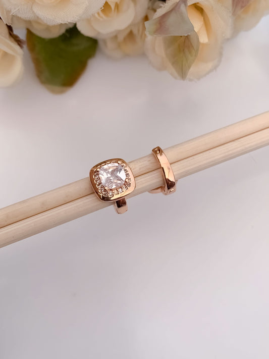 Buy 1 Get 1 Free -American Diamond Rose Gold Square Shape Delicate Fancy Bali