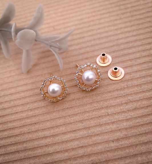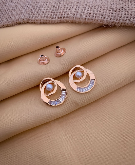 Buy 1 get 1 Free -American Diamond Rose Gold Plated white Pearl Delicate Tops Earring