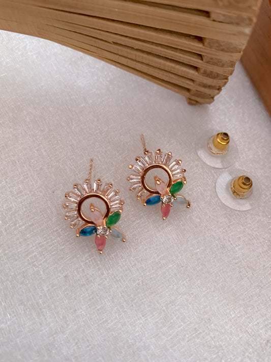 BUY 1 GET 1 FREE -American Diamond Multi color Rose Gold Earrings