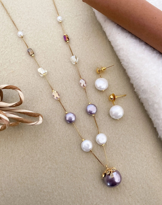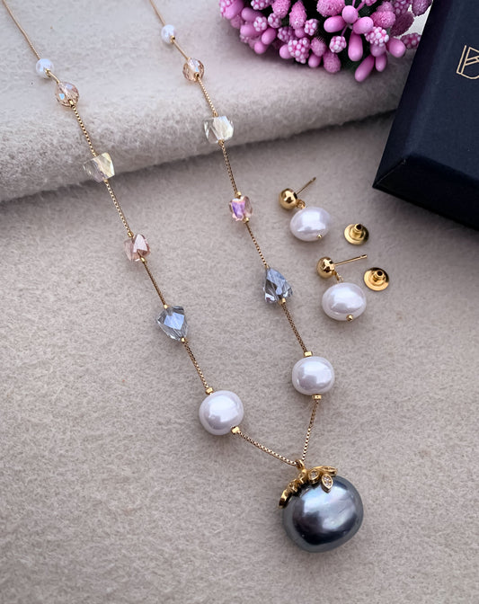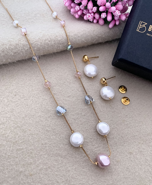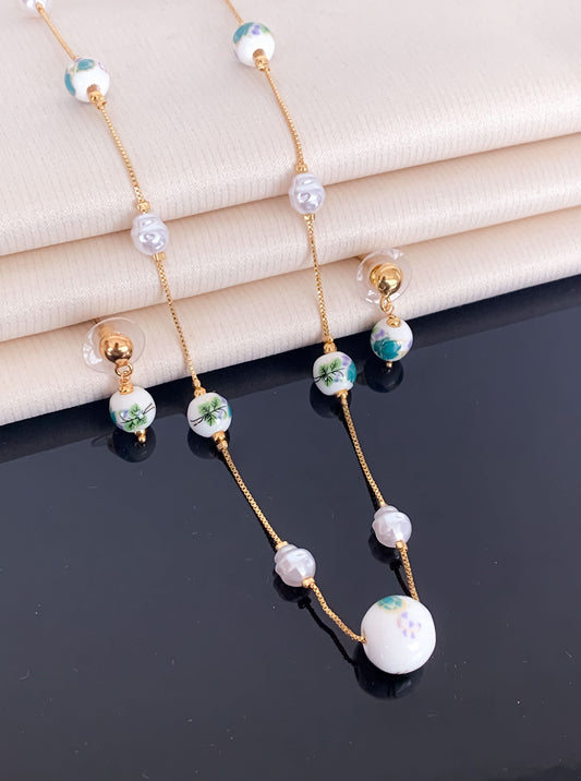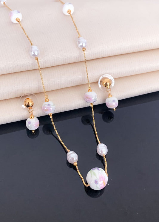 Fancy High Gold Printed Pearl with Earring Western Mala Set
