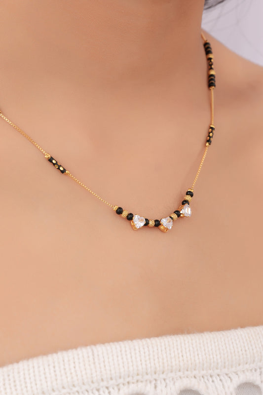 Buy 1 Get 1 Free - Minimal Heart Crystal Black Bead Mangalsutra