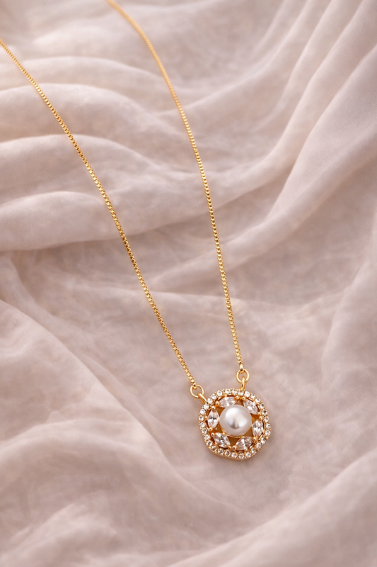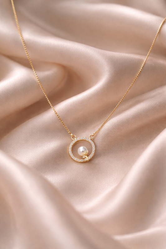 Rose Gold Pearl Accent Minimal Pendant Necklace