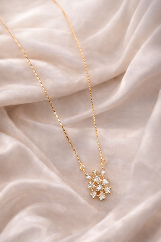 American Diamond Flower Shape Fancy High Gold Chain Pendant