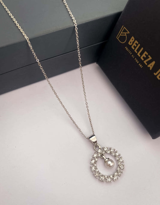 American Diamond Silver Plated Fancy Delicate Chain Pendent Necklace