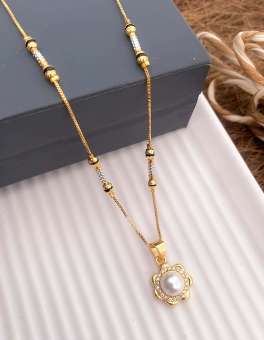 American Diamond With White Pearl Flover High Gold Chain Pendant