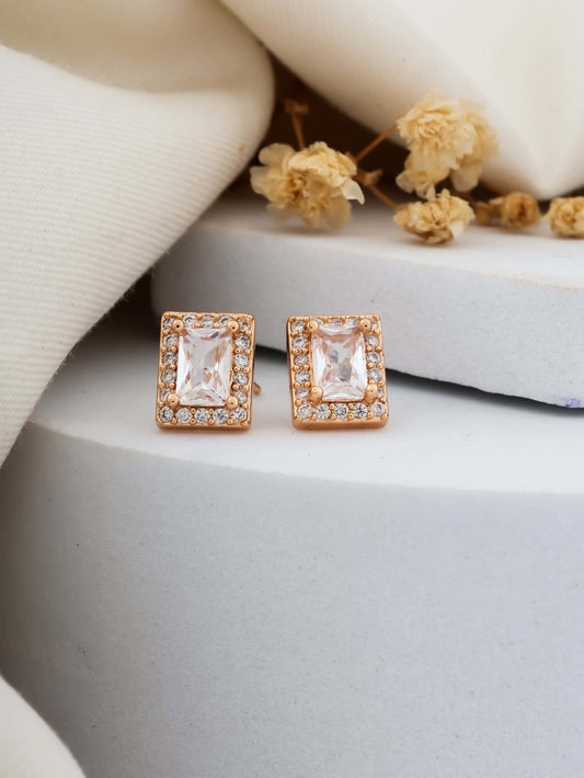 Buy 1 Get 1 Free - Emerald-Cut Diamond Stud Earrings – Rose Gold Finish