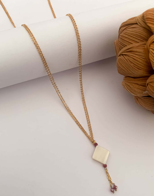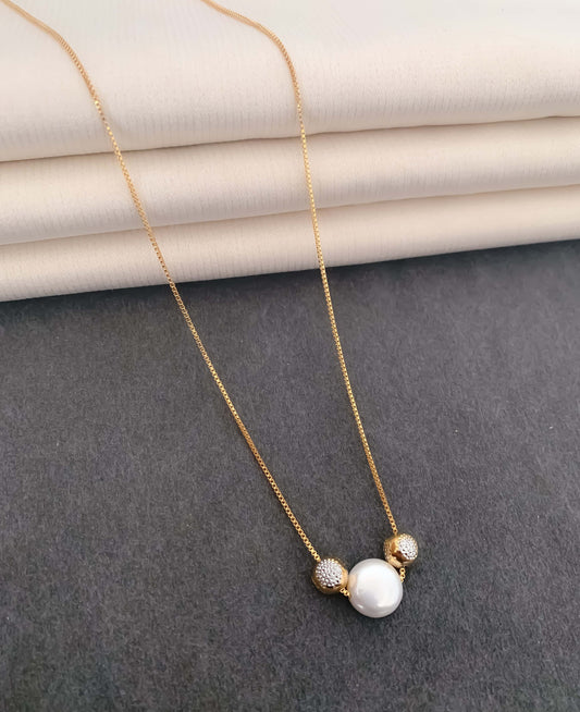 Tu-Tone High Gold white Beads Fancy Delicate Steel Chain