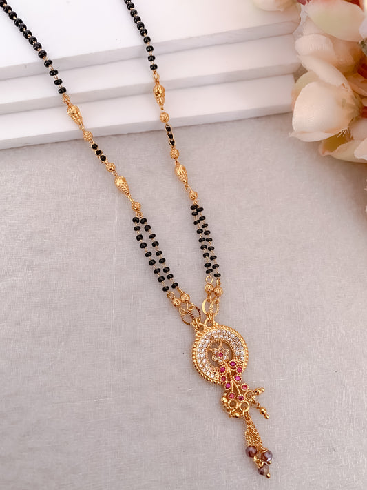 Buy 1 Get 1 Free - American Diamond Round Shape Ruby Mangalsutra