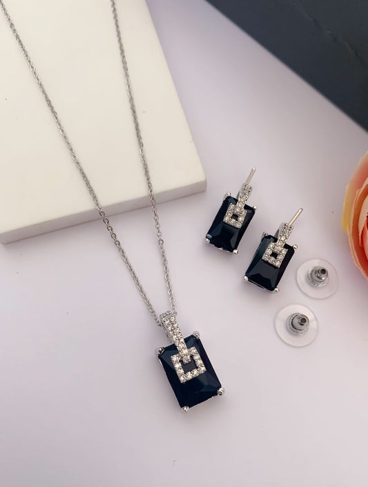American Diamond Fancy Stone Silver Plated Pendant Set