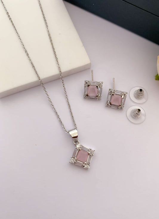 American Diamond Fancy Rose Gold color full Stone square Pendant Set