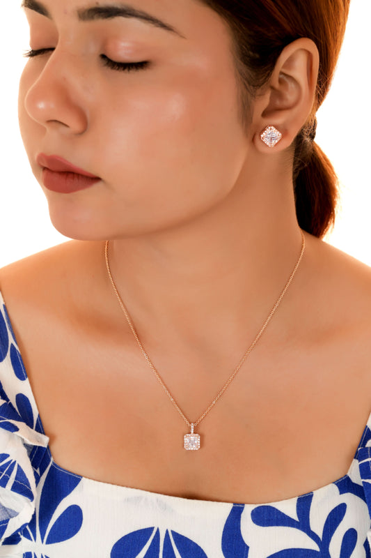 Square Solitaire Rose Gold Pendant Necklace