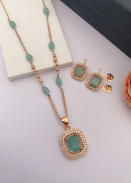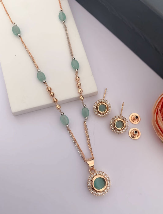 American Diamond Rose Gold Pleted Fancy Chain Pendant Set