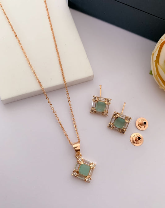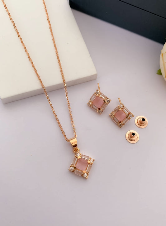 American Diamonds Diamond All Colour Stone Rose Gold Plated Delicate Pendant Set