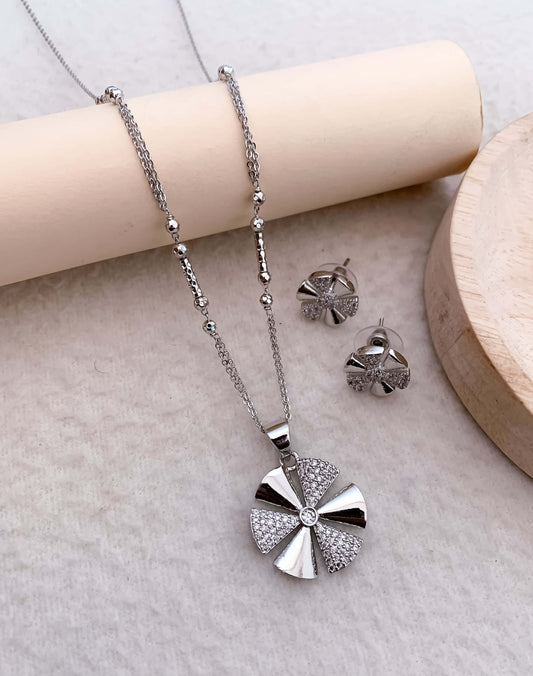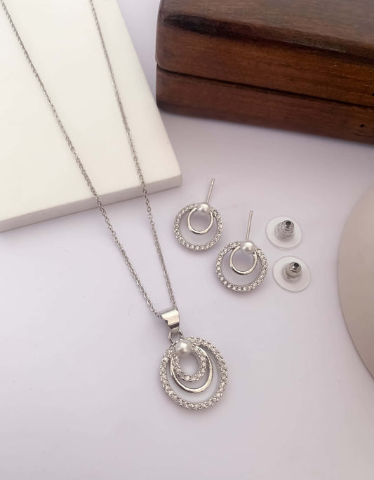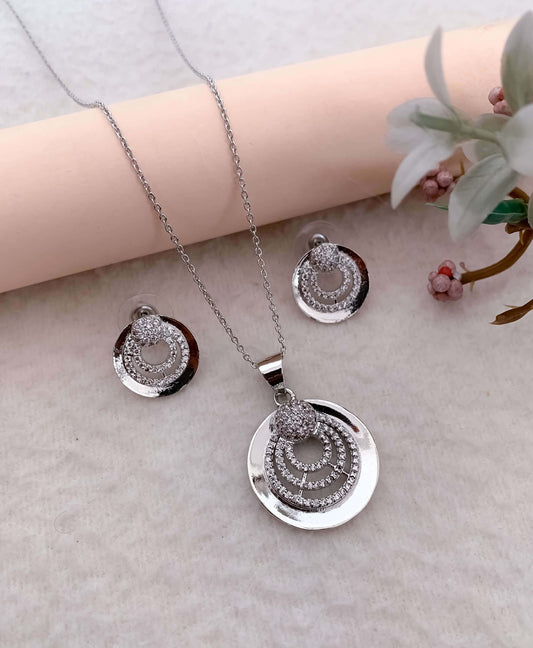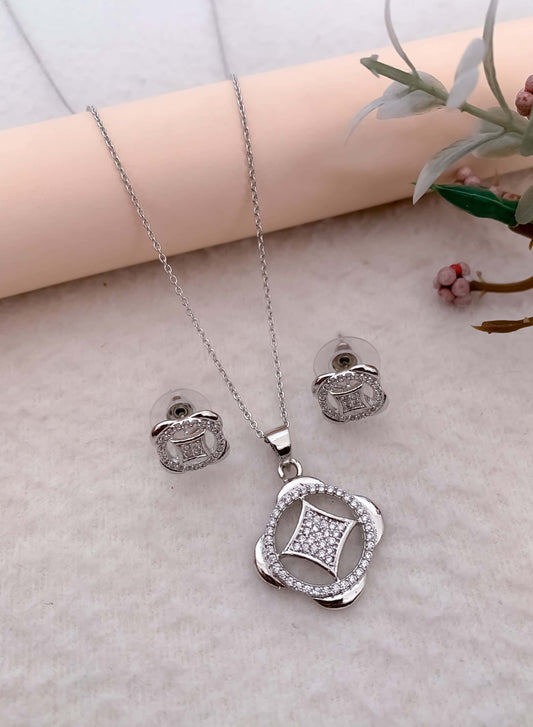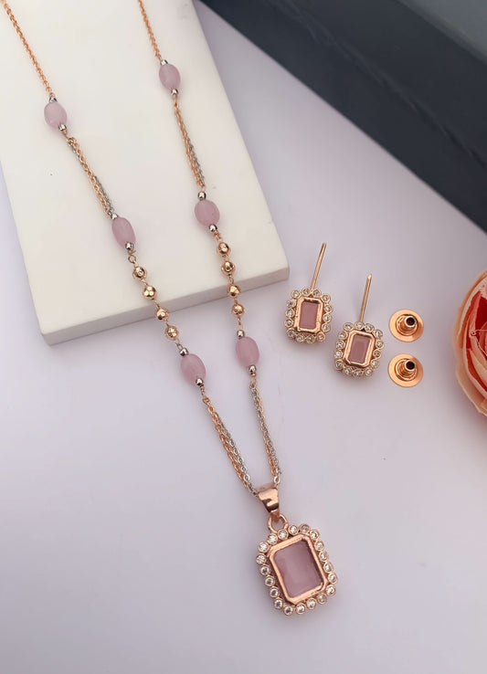American Diamond Fancy Chain Rose Gold Pendant Set