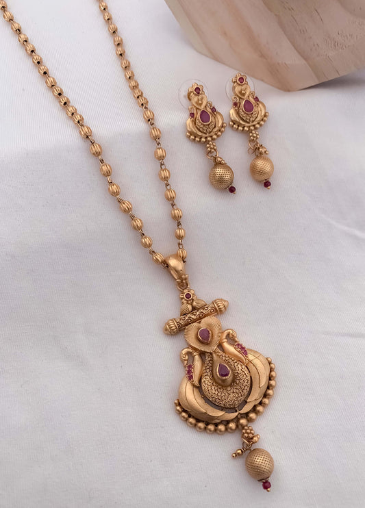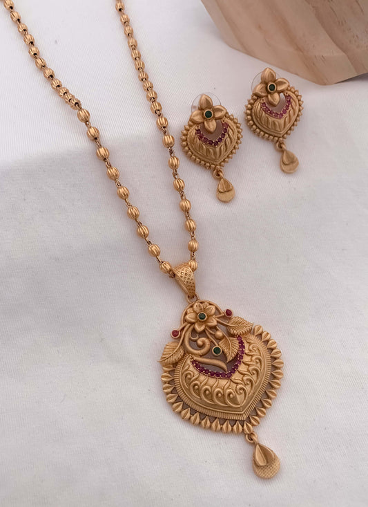 Brass High Gold Flower Design Matt Finished Gold Look Fancy Pendant Set