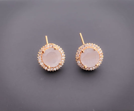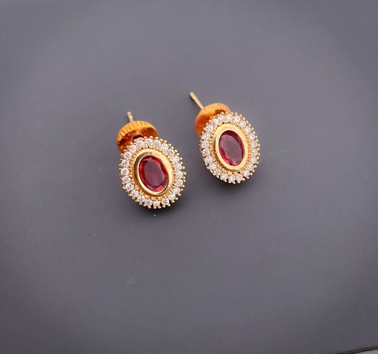 American Diamond Colour full Rose Gold Plated Ovel Shape Pendant Set with Nice Earring