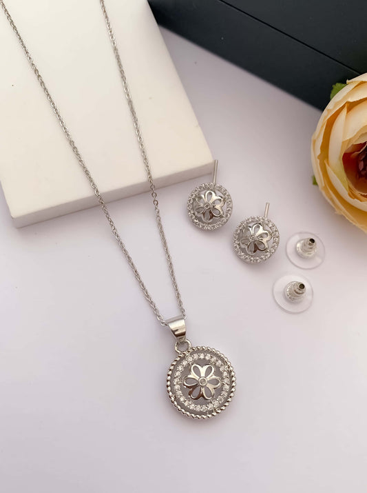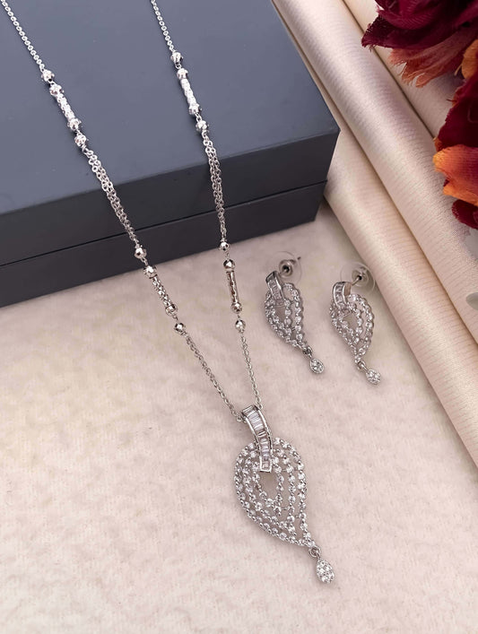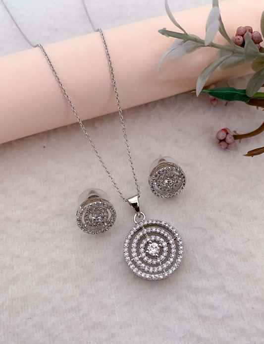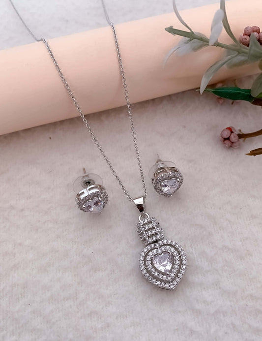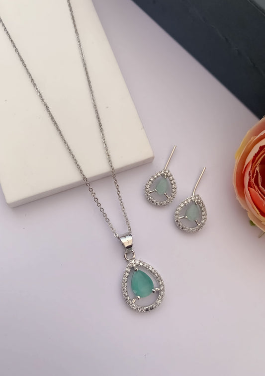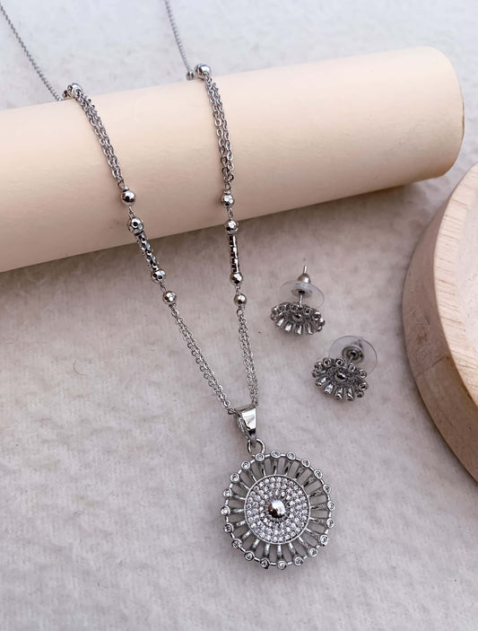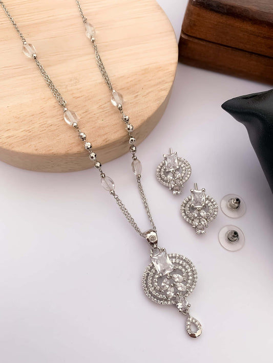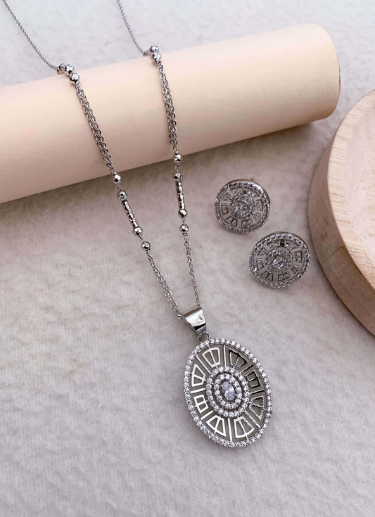American Diamond Fancy Stone Silver Plated Pendant Set