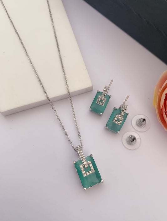 American Diamond Fancy Silver Stone square Pendant Set