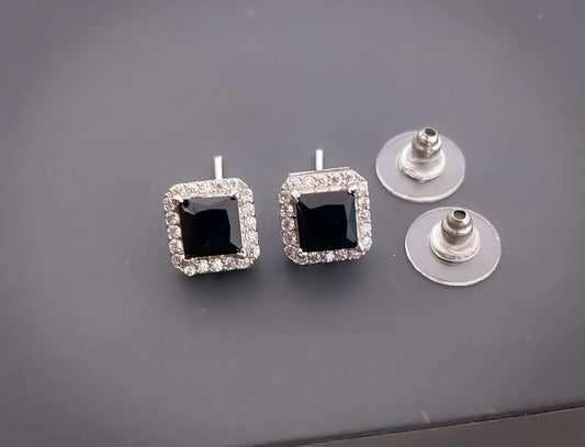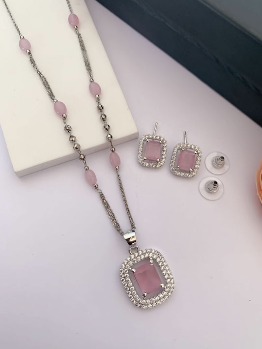 American Diamond Square All Colour Silver Plated Delicate Pendant Set
