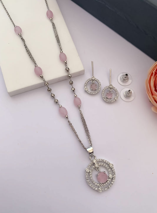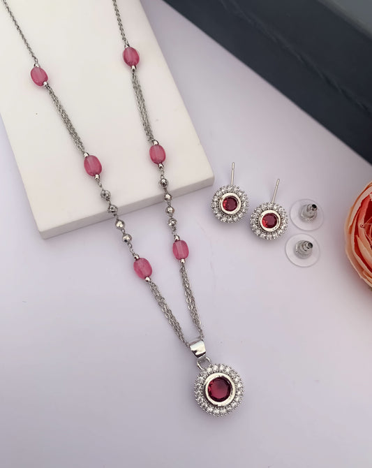 American Diamond silver Pleted Fancy Exclusive Design Hanging Stone Pendant Set