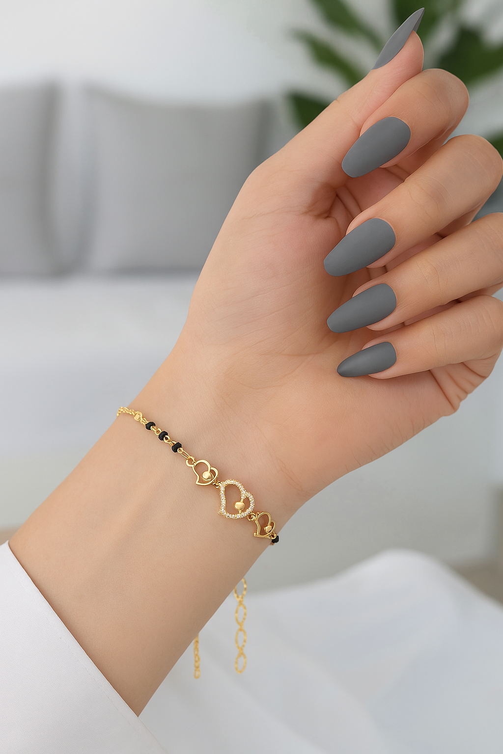 Introducing our exquisite American Diamond Heart Shape High Gold Plated Hand Mangalsutra, a true symbol of elegance and grace. Crafted with utmost precision, this stunning piece of jewelry is designed to captivate hearts and leave a lasting impression