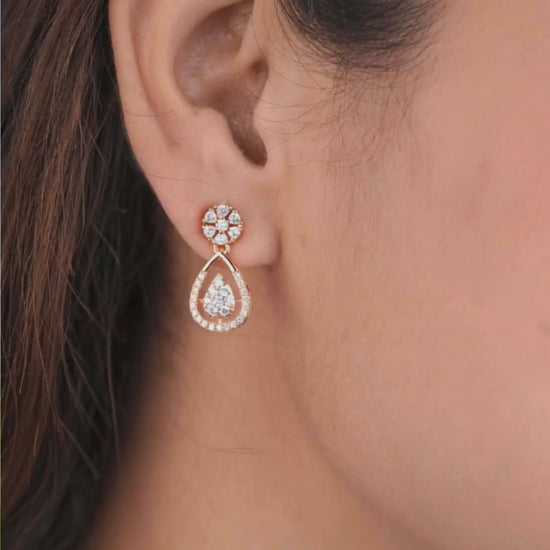 These American Diamond high rose gold fancy Earrings are beautifully crafted with quality materials. With its luxurious design, they will elevate any outfit to the next level. Made with expert precision, these earrings are guaranteed to catch the eye and make you feel confident and elegant.