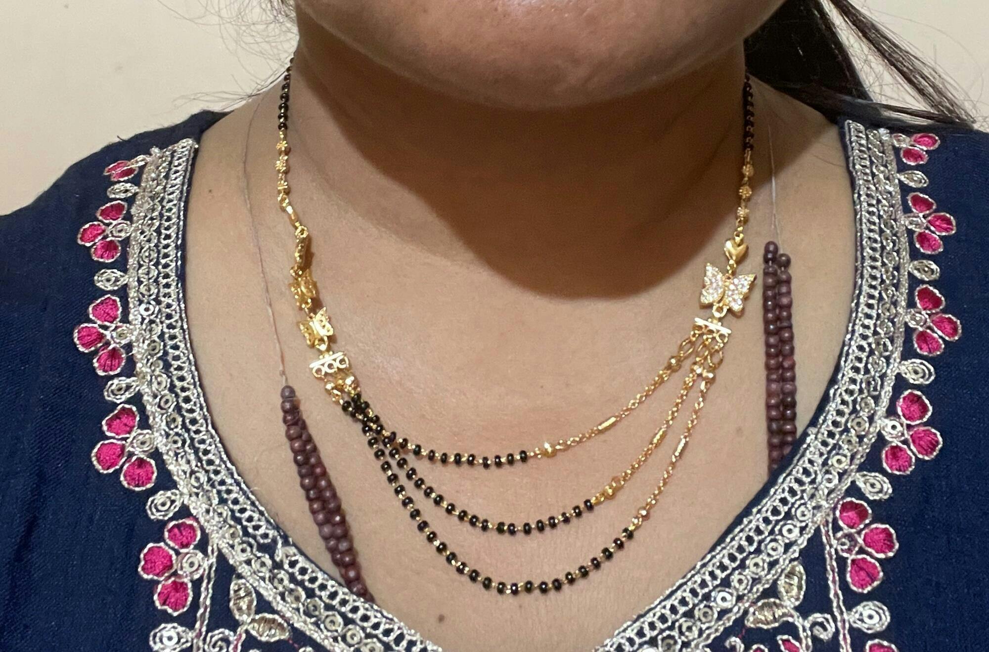Buy 1 Get 1 Free - American Diamond Butterfly Shape Gold Fancy Delicate Mangalsutra
