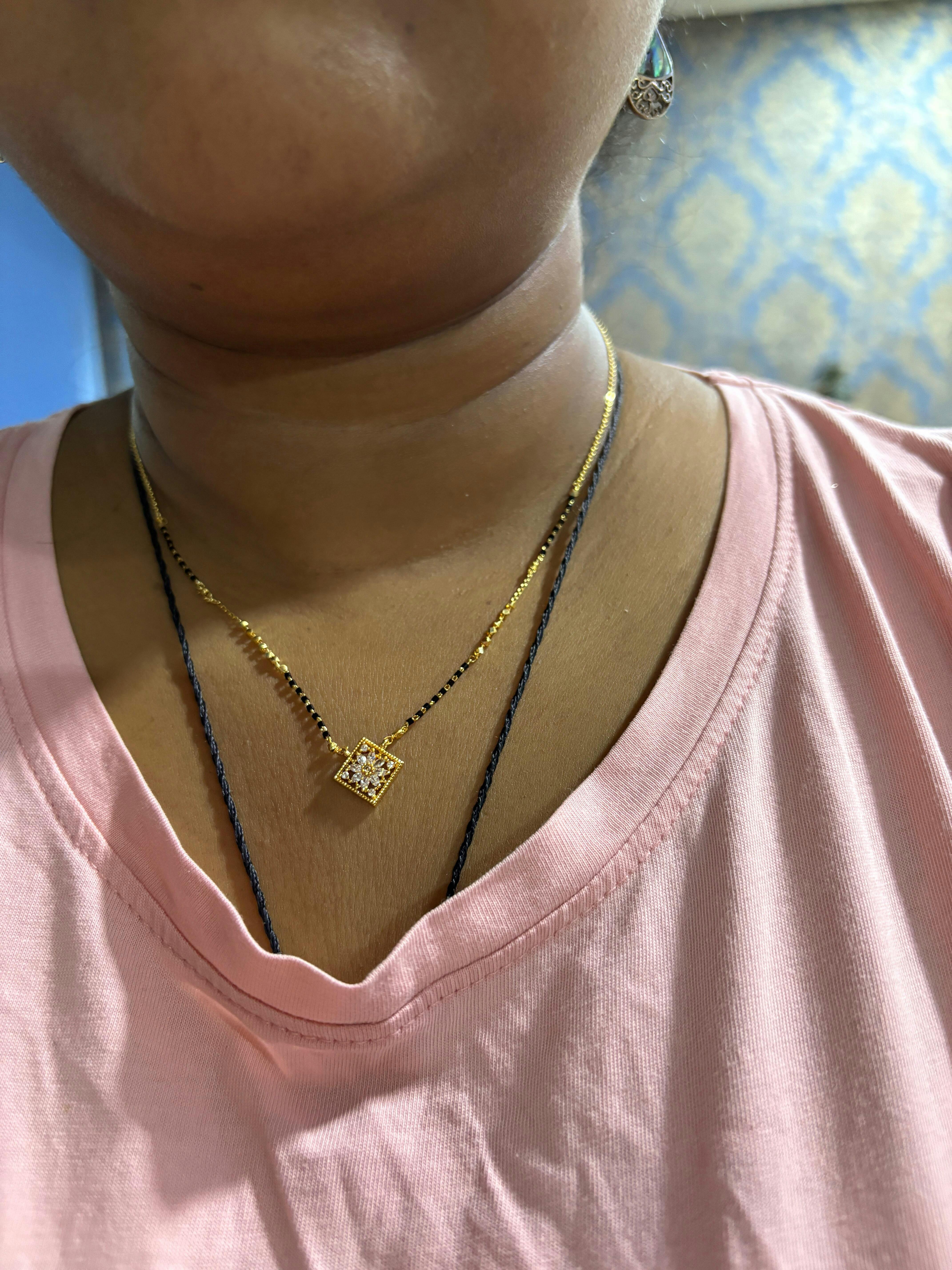 Buy 1 Get 1 Free - American Diamond Gold Plated Square Shape Mangalsutra