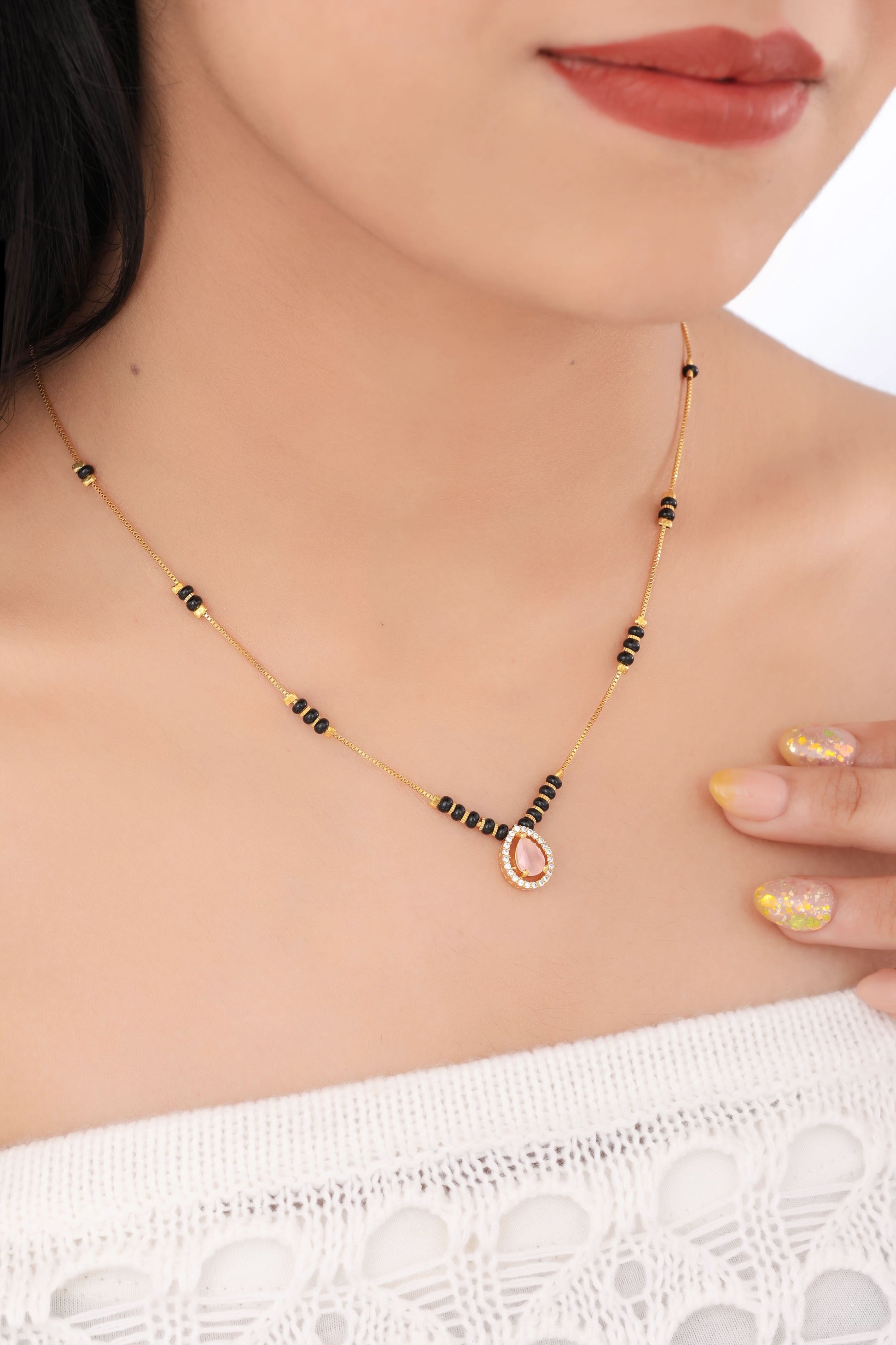 Buy 1 Get 1 Free - American Diamond Pink Stone Fancy Delicate Mangalsutra
