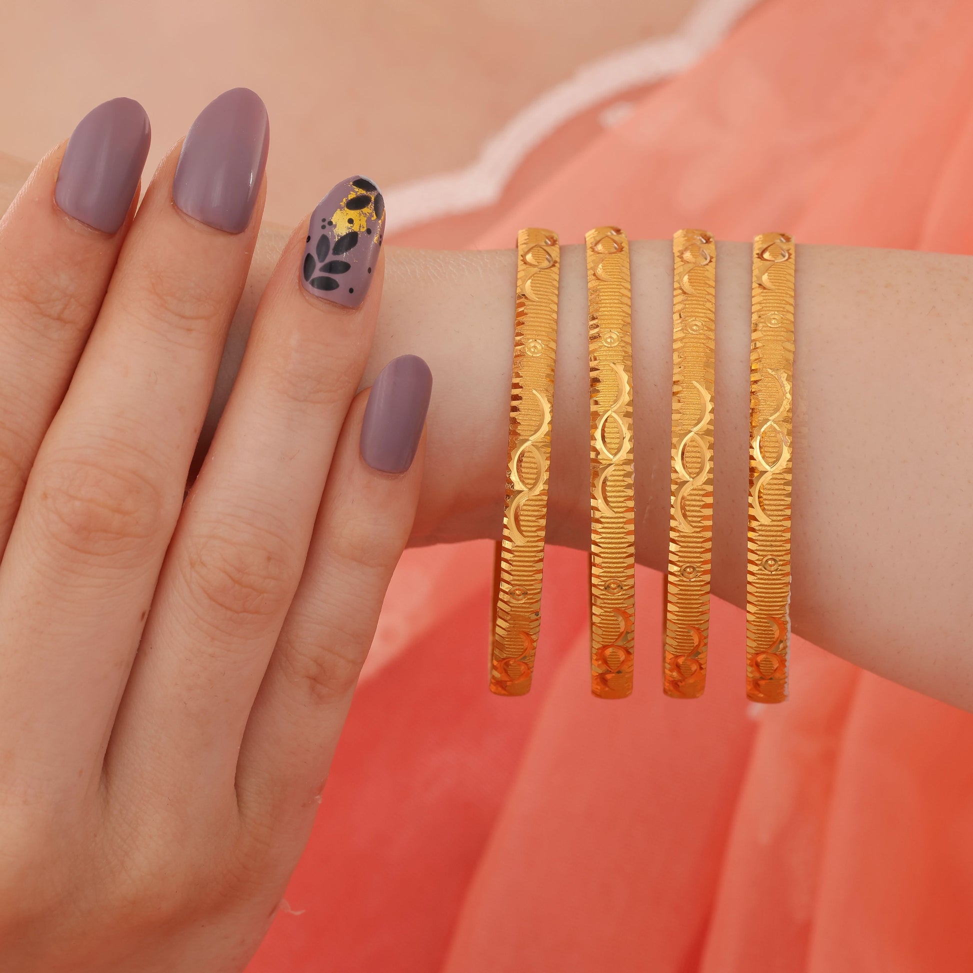 This set of 4 Radhika Bangals (bracelets) offers a 1-for-1 deal, giving you double the accessories for the same price. Made with high-quality materials and intricately designed, these bracelets will add a touch of elegance and style to any outfit. Hurry and grab this limited-time offer now!