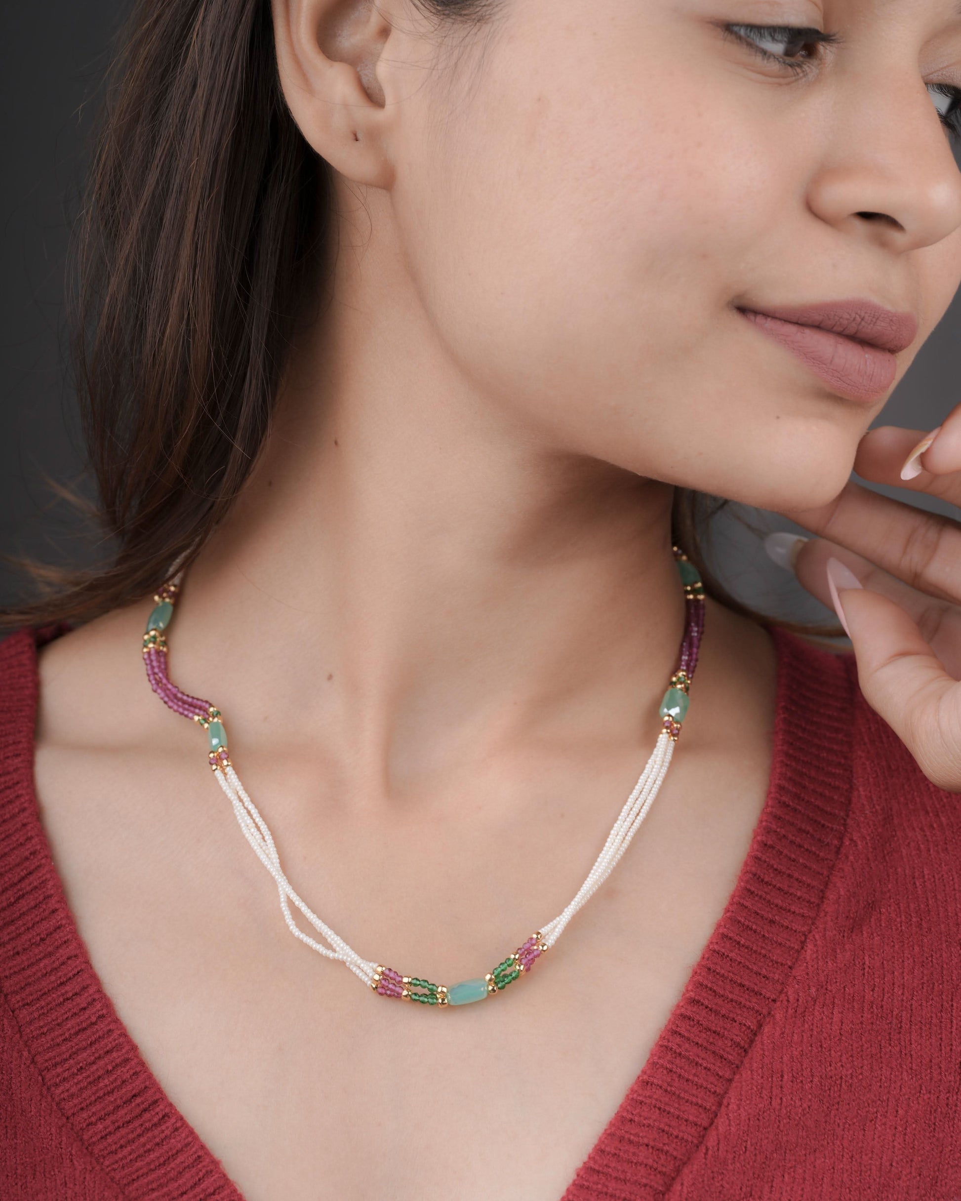 Fancy Crystal Mala 3 Line Length 18 Inch