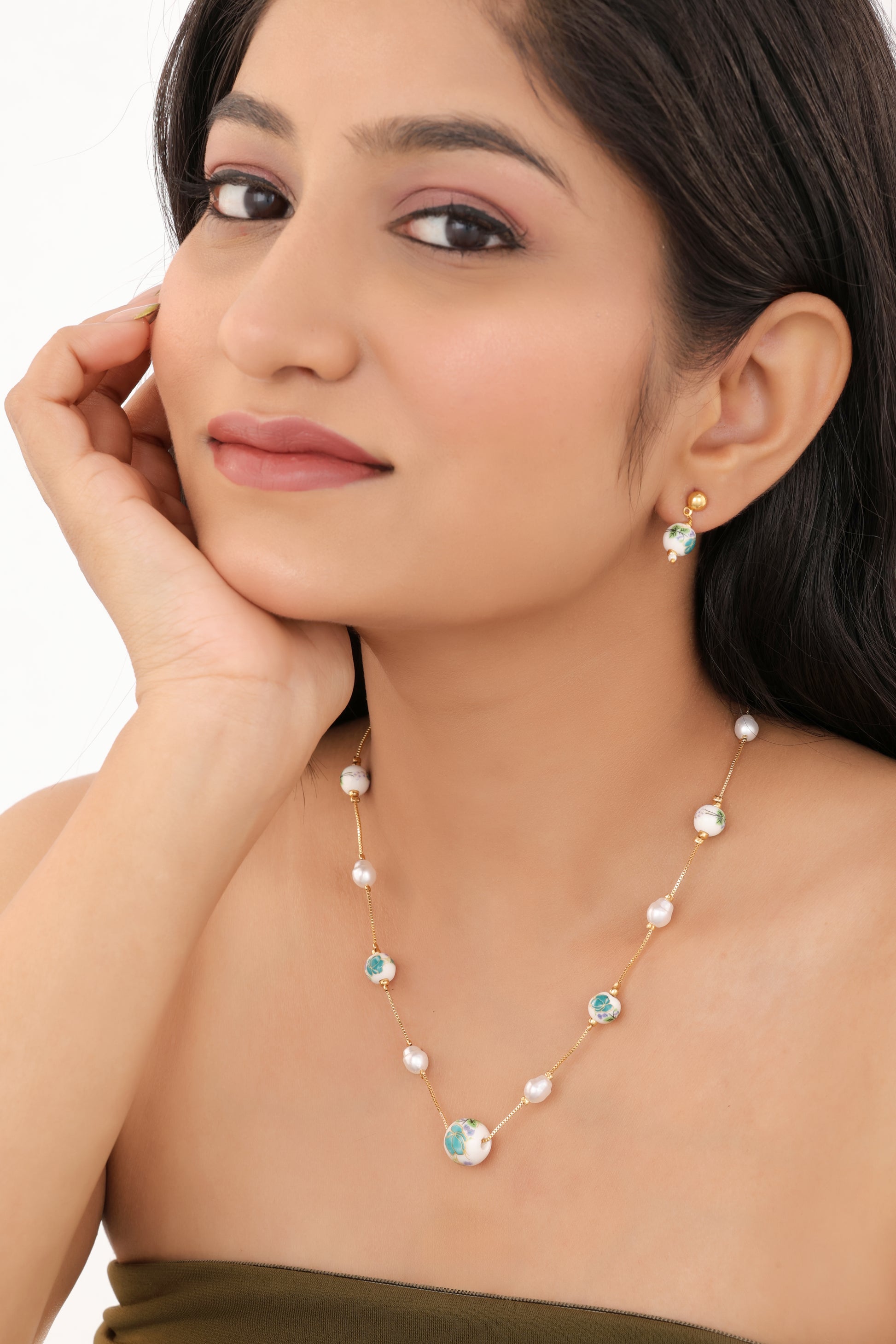 High Gold Fancy printed Pearl Royal Look Western Mala Set